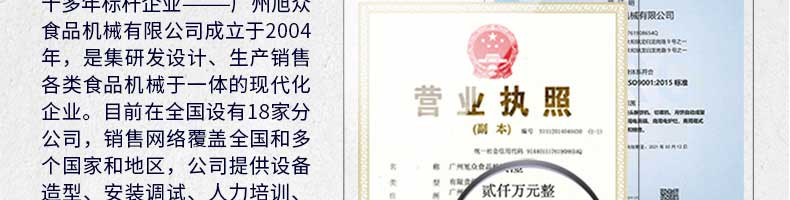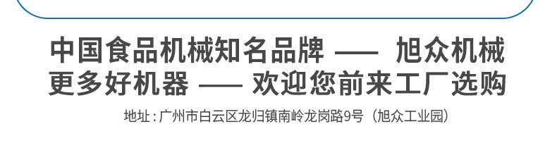 廣州旭眾食品機械有限公司是一家集科研開發,生產設計,營銷服務為一體的現代化生產企業?,F代化生產車間,精湛制造技術,所產機械歷經市場重重考驗,不斷贏得海內外客戶的贊譽。