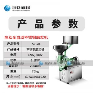 名稱SZ-20不銹鋼磨漿機 電源220/380v 功率1.1kw 產量 尺寸607*350*1020mm 重量75kg 規格 其他